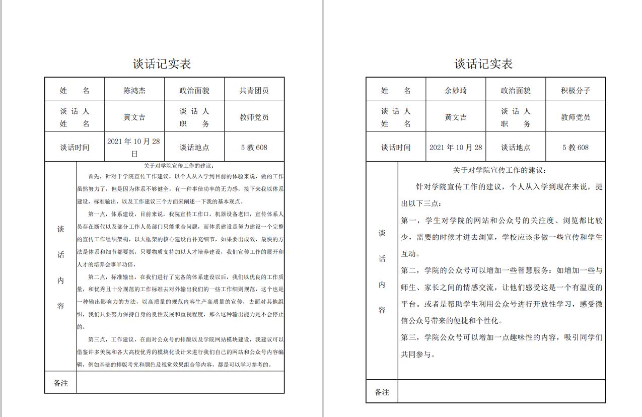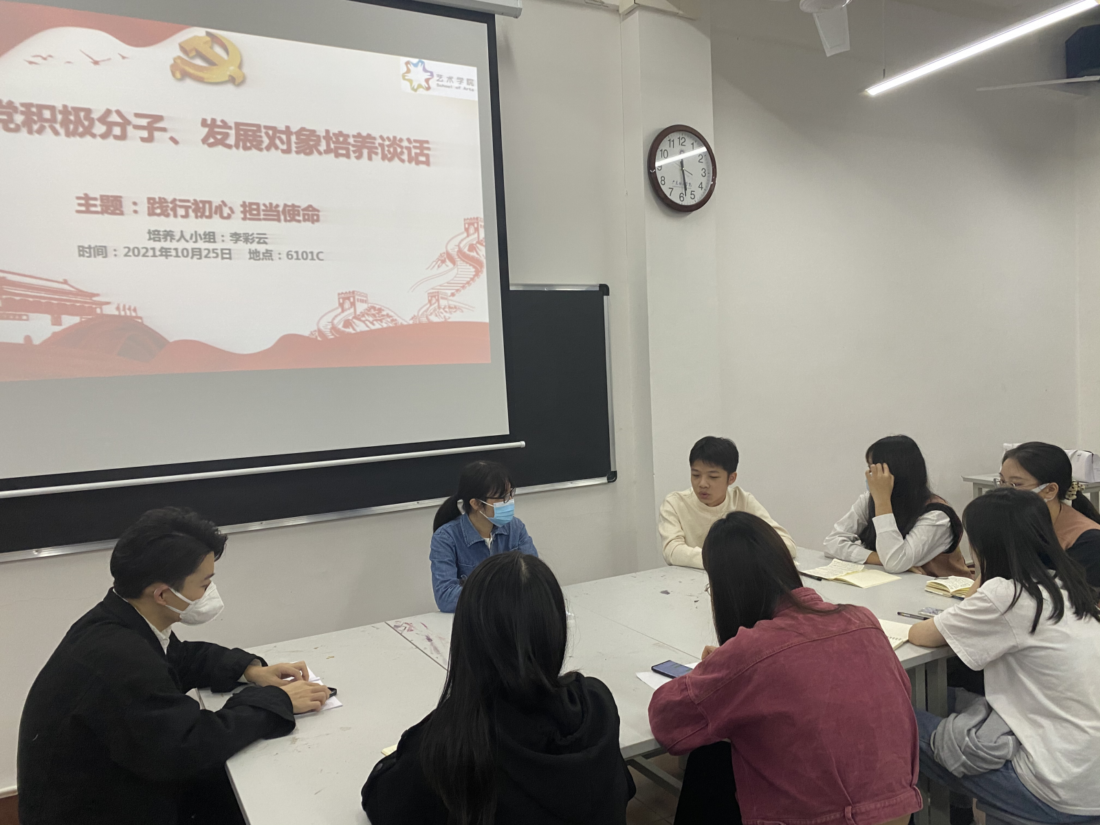 为了深入了解支部成员的思想动态,加强对入党积极分子的思想引领,严格落实党员发展工作,引导支部成员更好地向党组织靠拢,2021年10月26日-11月3日,艺术学院党总支组织进行本学期入党积极分子和发展对象谈话工作。