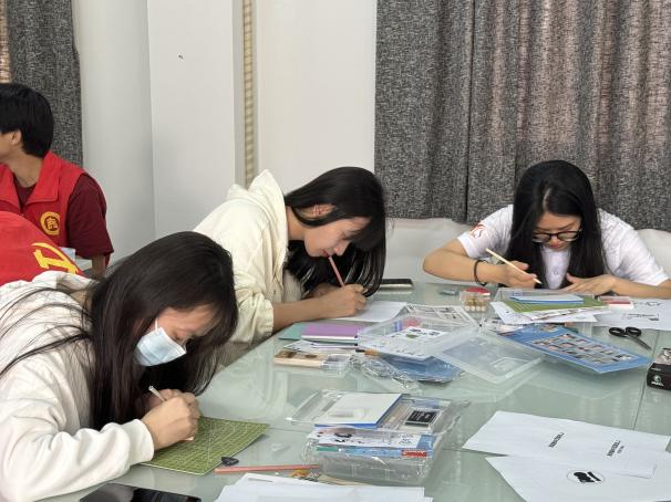 紧接着,同学们在老师的指导下开始雕刻。橡皮章雕刻虽然简单易学,但是实际操作起来非常考验雕刻者的耐心与细致。同学们先用铅笔在纸上画出想要刻出的图案,再用刮板轻轻地把图案转印在橡皮上,接着专心致志地沿着图案的线条进行雕刻,努力保持力度和手法的均匀,雕刻出对党热爱和对培正30周年校庆祝福的美丽图案。