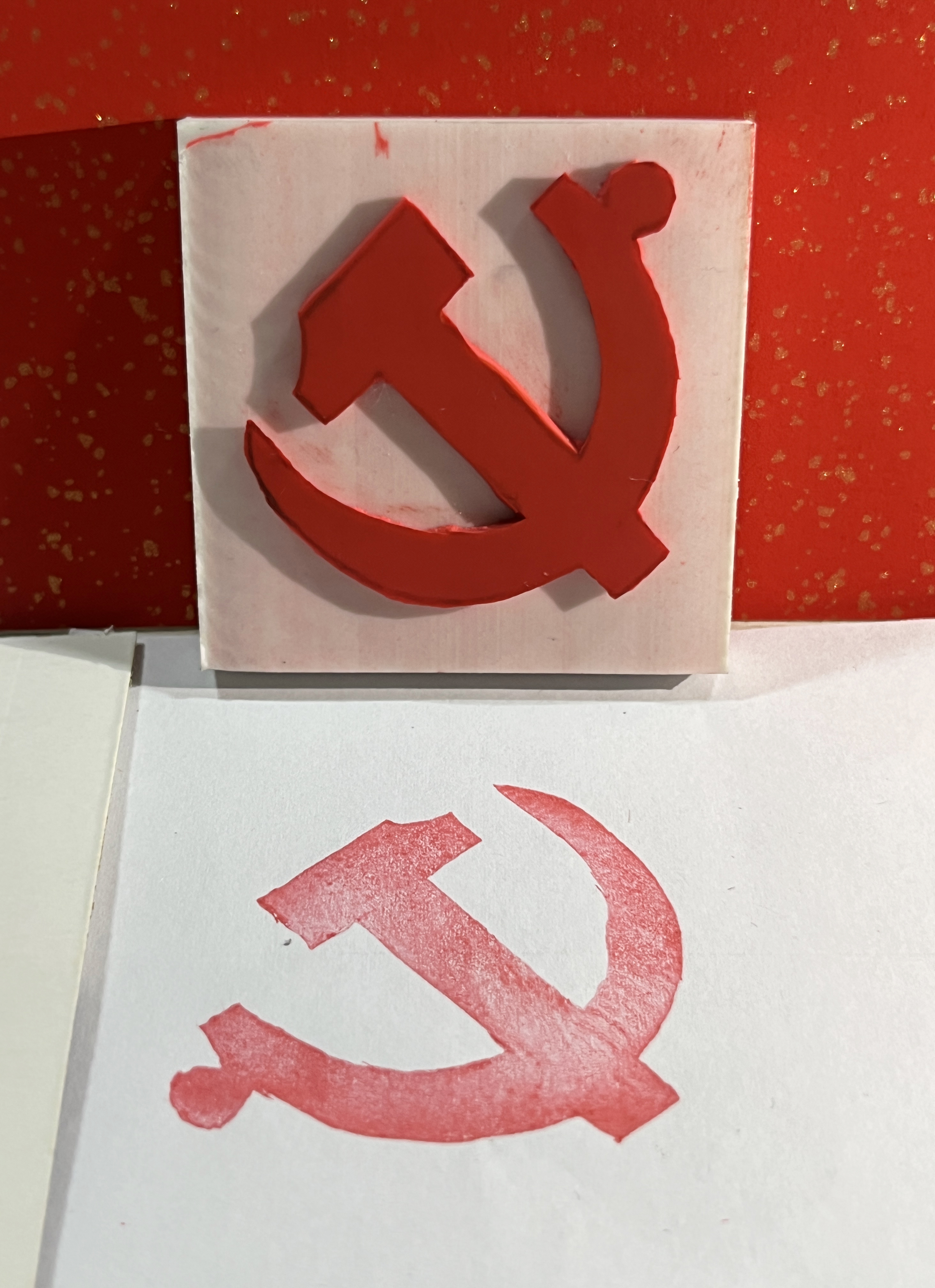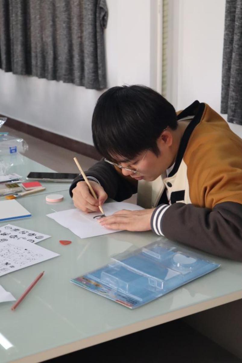 最后,同学们沉浸于创作过程中,用橡皮砖与刻刀雕刻出心中美好的愿景,刻画出对党和祖国的幸福美好。