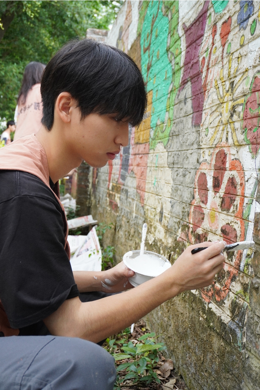 墙绘后期,需要将整体风格和细微之处追求精美,正如参与的同学表示,“平凡的生活里蕴藏着宝藏,有着专属调色盘的浪漫。所见,皆可入画;所想,皆可下笔。光影肆意变换,创作的墙绘,在树叶摇曳间生长,在茕茕孑立时呢喃。”