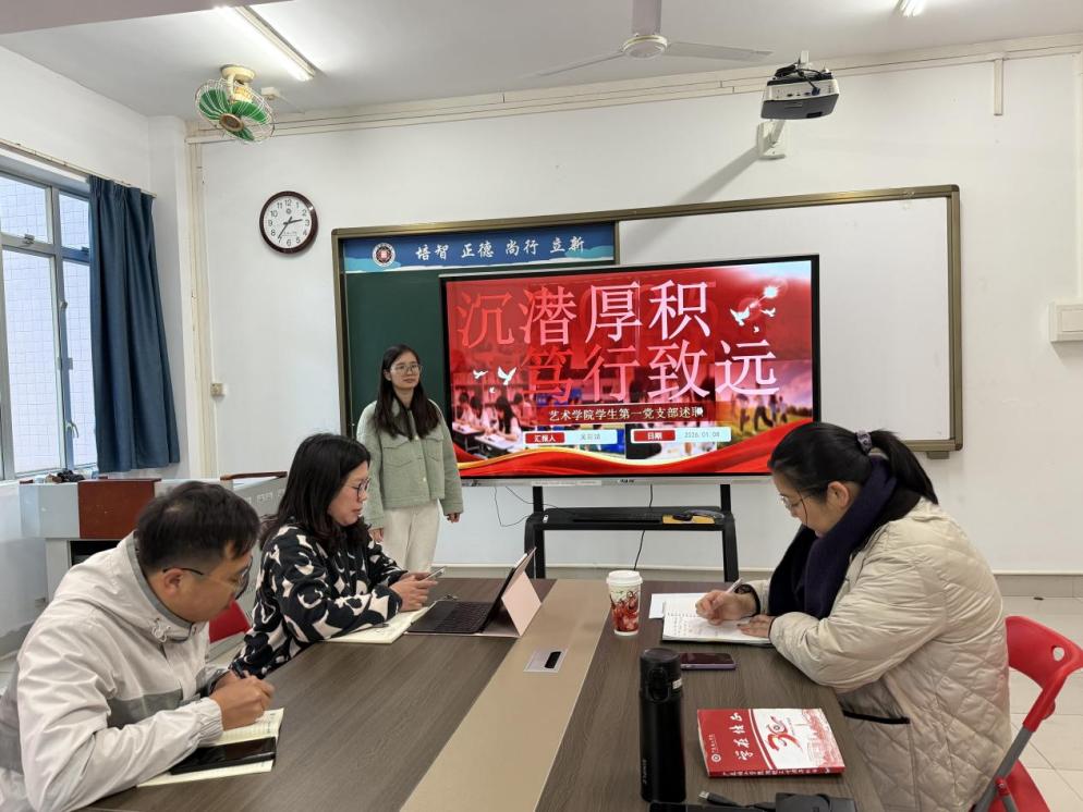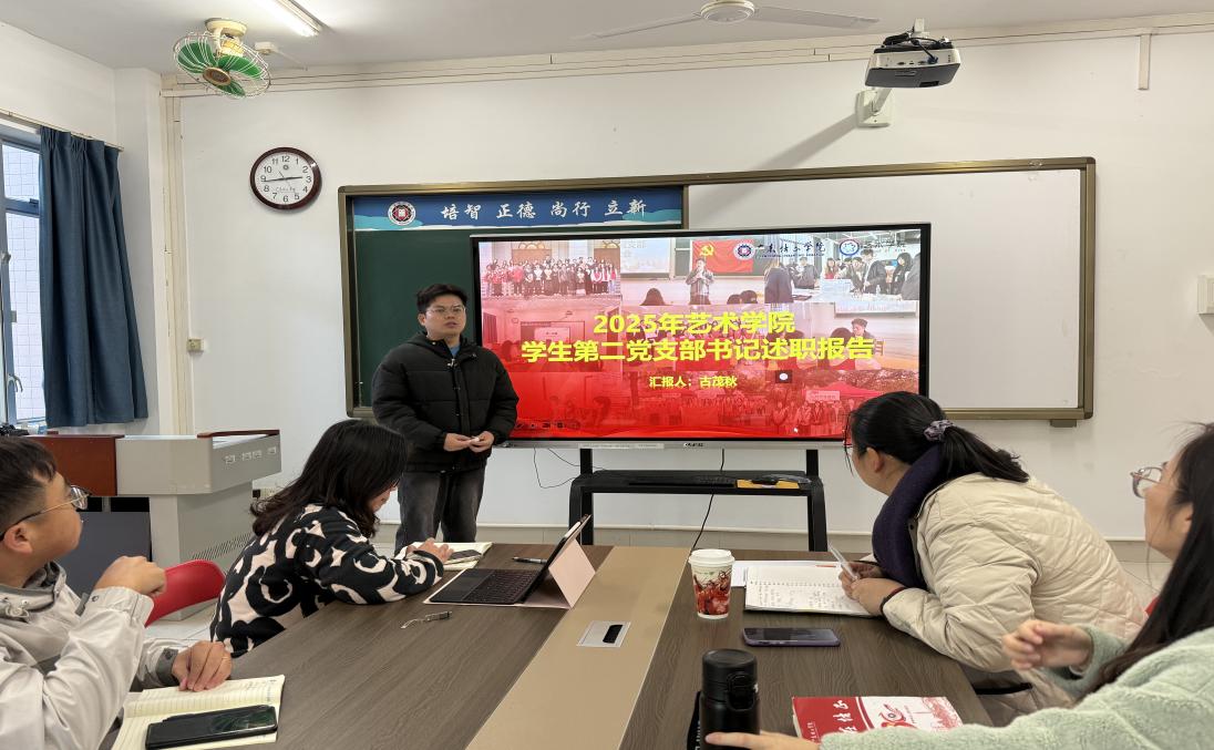 本网讯(钟湘)为进一步巩固和拓展学习贯彻习近平新时代中国特色社会主义思想主题教育成果,持续推动基层党建重点任务落地落实,提升党支部工作规范化水平,艺术学院党委于2026年1月8日在4423教室组织召开了2025年度抓基层党支部书记述职会。