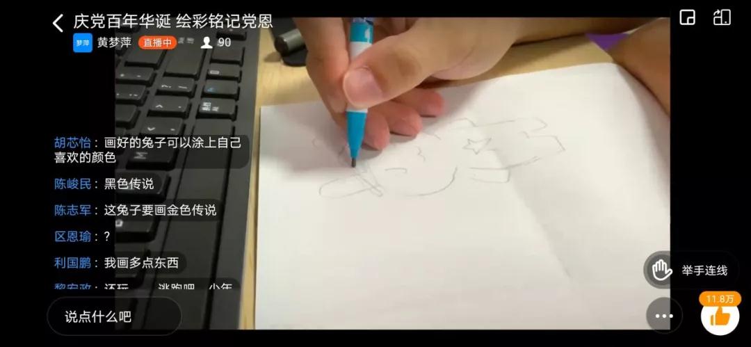 今天负责与同学们一起学习的,是第一小组的黄梦萍和姚柱强两位同学。今年是我们伟大的中国共产党建党一百年,第一小组就以建党100周年为主题,围绕建党故事线开展绘画教学,绘画内容为党和英雄形象。