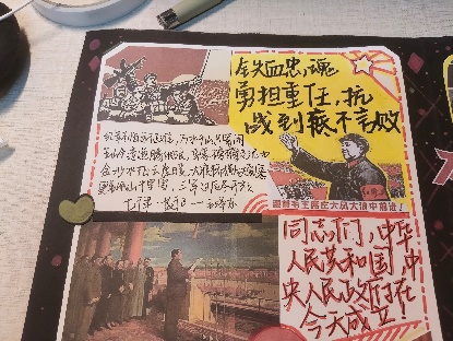 此作品通过手绘、拍照的方式,记录了宿舍成员参观抗英基地、观看爱国电影、设计电子印章等活动,展现了宿舍成员之间的合作精神以及浓厚的爱国情怀。