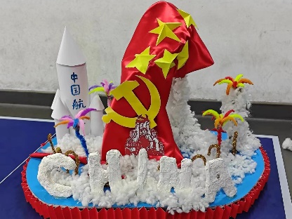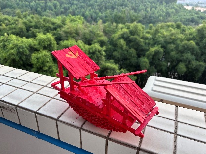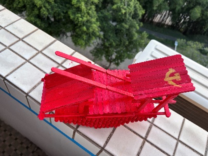 此作品为纪念中华人民共和国成立75周年华诞而创作,红船由三百多根雪糕棍制作而成。在创作过程中,我们遇到了许多困难与挑战,红船的形成也见证了宿舍成员之间克服困难,团结合作的精神。