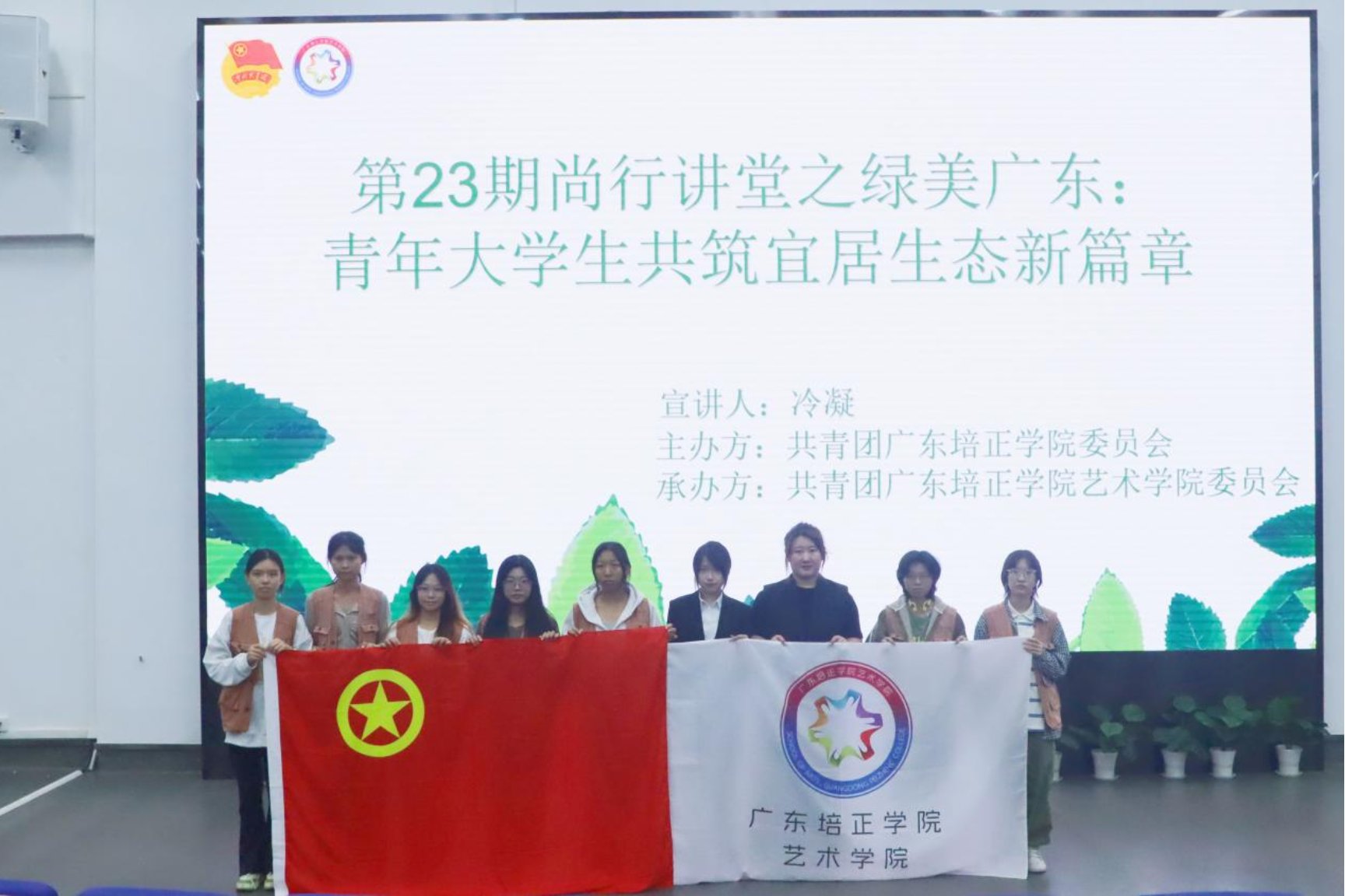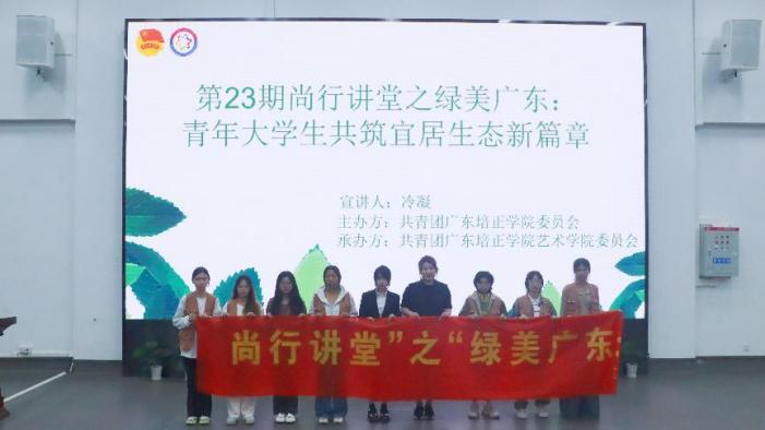 值此建国75周年之际,本次专题讲座展现了国家生态文明建设的光辉历程,聚焦于“绿美广东”生态建设的宏伟蓝图。共青团广东培正学院艺术学院委员会在共青团广东培正学院委员会的指导下,于2024年11月5日晚19:00-21:00在第5教学楼108报告厅举办了一场主题为广东培正学院第 23 期“ 尚行讲堂 ”之“绿美广东:青年大学生共筑宜居生态新篇章”。