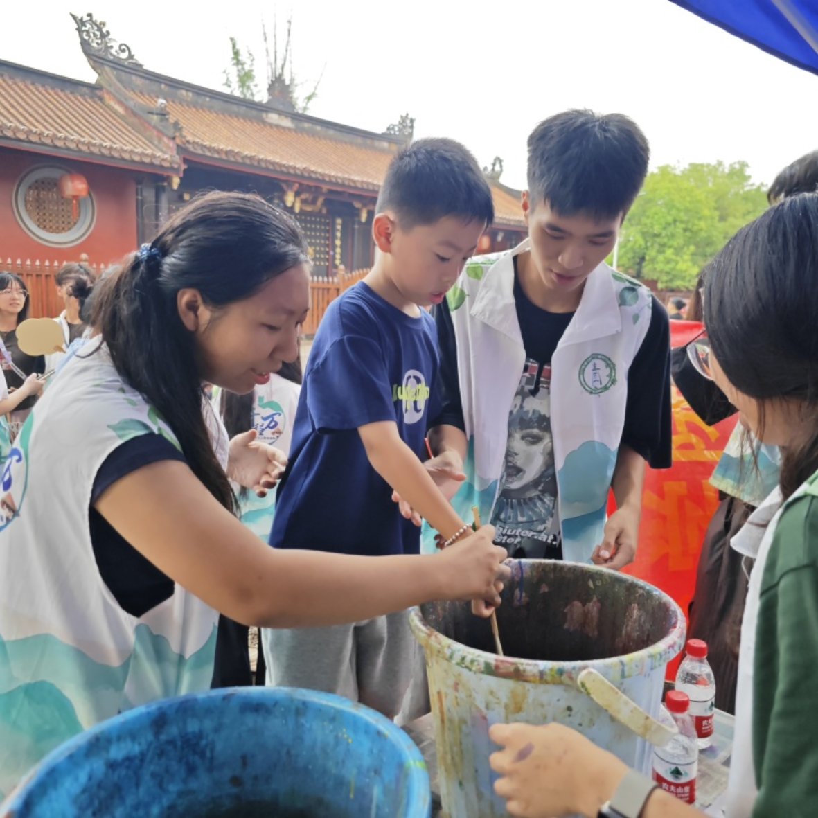本次活动由“青藤”绘彩乡村实践团与潮州弘德寻失志愿者联合会联合策划,旨在通过互动体验的形式推广漆艺技艺,同时为公益事业凝聚社会关注。活动选址开元寺——这座承载潮州千年文化的古刹,既借力了景区的人流优势,又以古韵环境呼应漆艺的传统魅力。