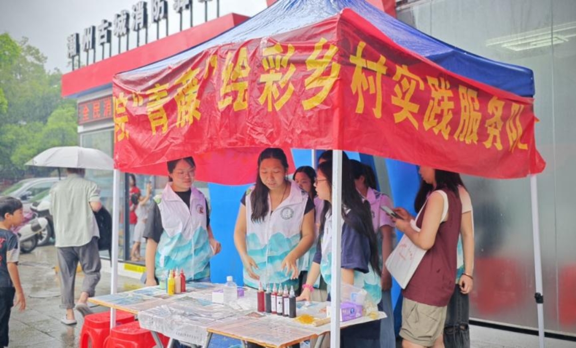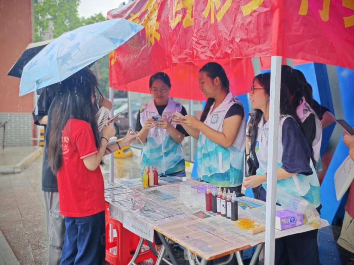 下午3点,团队成员冒雨抵达现场。雨水未能消减热情,反为活动增添了几分诗意。大家分工协作,短短半小时内,遮雨棚下,临时工作区迅速成型,静候游客到来。