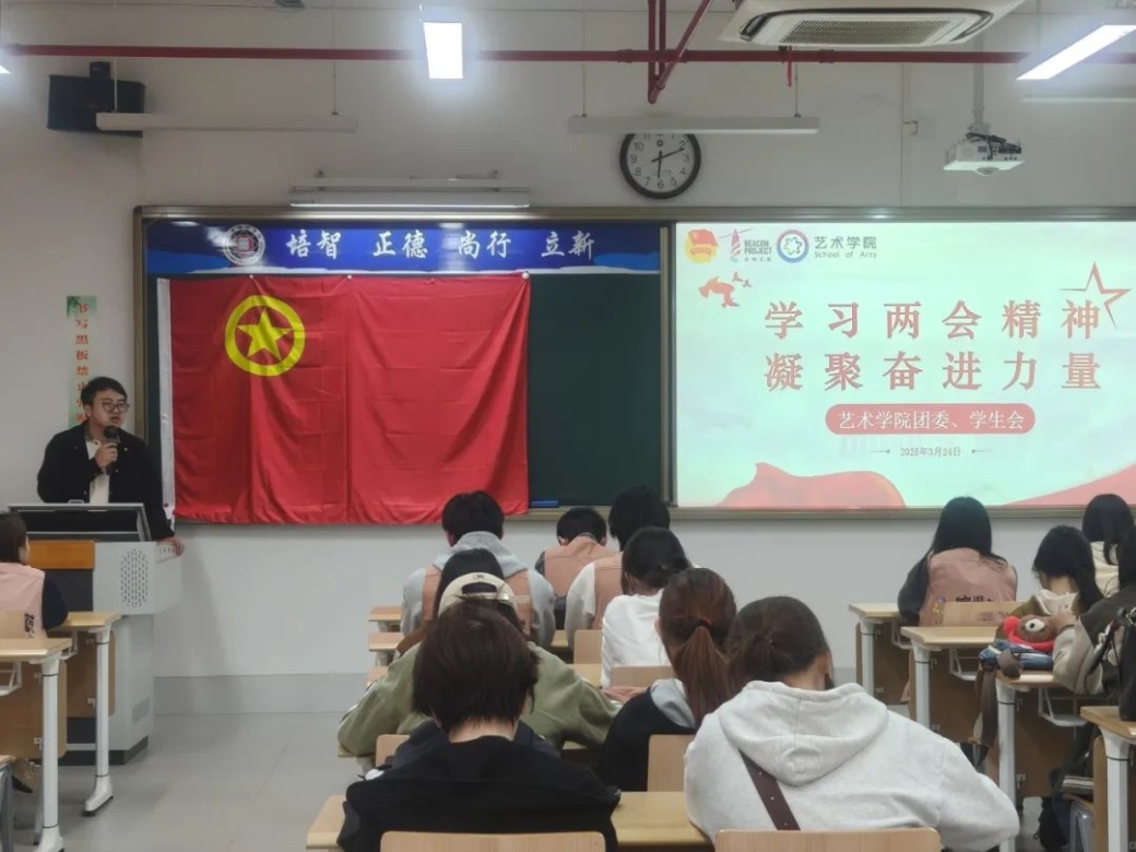 站在新的历史起点,广东培正学院艺术学院以“学习两会精神,凝聚奋进力量”为指引,将秉持“闯”的精神,敢于突破陈规,探索教育方法新路径;保持“创”的劲头,勇于创新工作方法,提升团委、学生会工作的吸引力与实效性;发扬“干”的作风,脚踏实地,将两会精神不折不扣地落实到工作的每一个环节。我们将锚定高质量发展目标,把两会精神融入奋进新征程的每一步,积极投身于学生工作中,助力学生成长成才。在服务同学、奉献社会中展现青春担当,为谱写中国式现代化新篇章注入源源不断的青春动力,让青春在时代的舞台上绽放出最耀眼的光彩 。