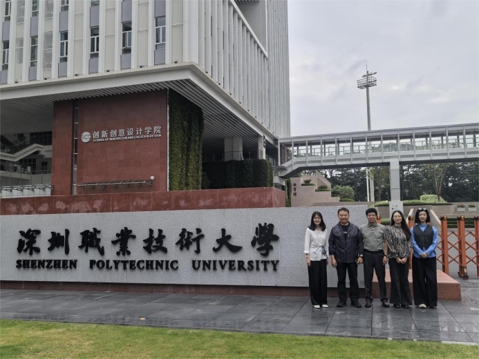 本网讯(杨可新、林世芳)为深入推进艺术设计类专业教学改革,优化人才培养体系,2025年10月30日,我院教师代表程耀、张旭、荣明芹、黄文怡、杨可新一行赴深圳职业技术大学创新创意设计学院开展专项调研交流活动。此次调研聚焦“双高计划”背景下的专业发展与人才培养模式创新,旨在学习借鉴深圳职大在产教融合、实训创新及课程改革等方面的先进经验,为我院相关专业建设提供有益参考。