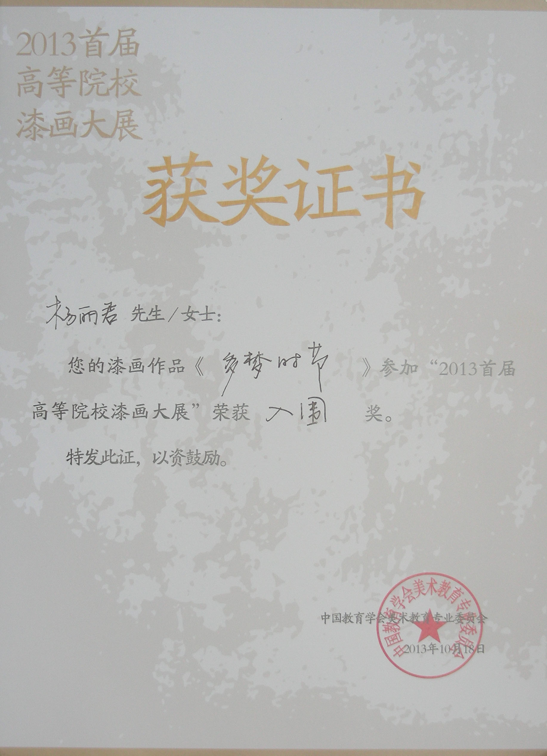 杨丽君-漆画作品《多梦时节》入选“2013首届高等院校漆画大展”