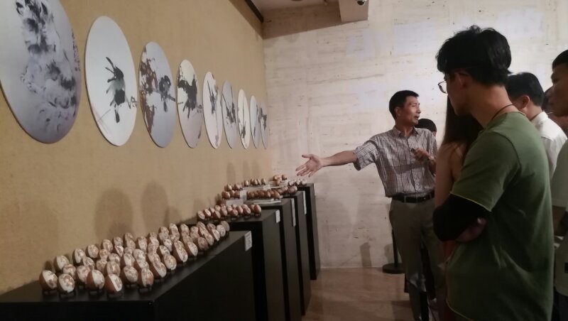 市美协黎日晁副主席对工艺美术专业学生创作的蛋雕赞不绝口