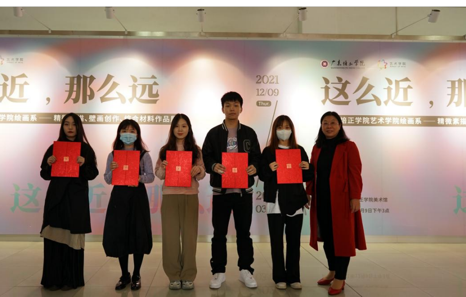 2021年12月9日下午3:00,广东培正学院艺术学院绘画系“这么近,那么远”——《精微素描、壁画创作、综合材料》特色课程作品展在广东培正学院美术馆第一展厅隆重开幕。
