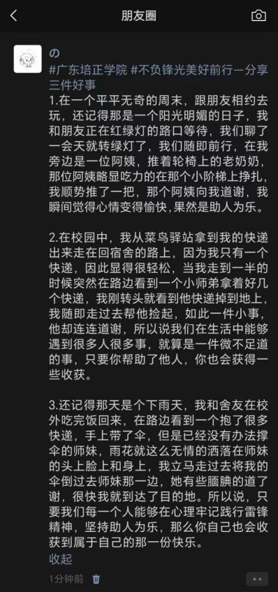 一次分享,让人们感受到生活中的积极面,提升心情,增强幸福感。一件好事,促使大家关注生活中的美好,学会感恩,珍惜所拥有的。在这个特殊的三月——雷锋月中,分享美好与幸福。
