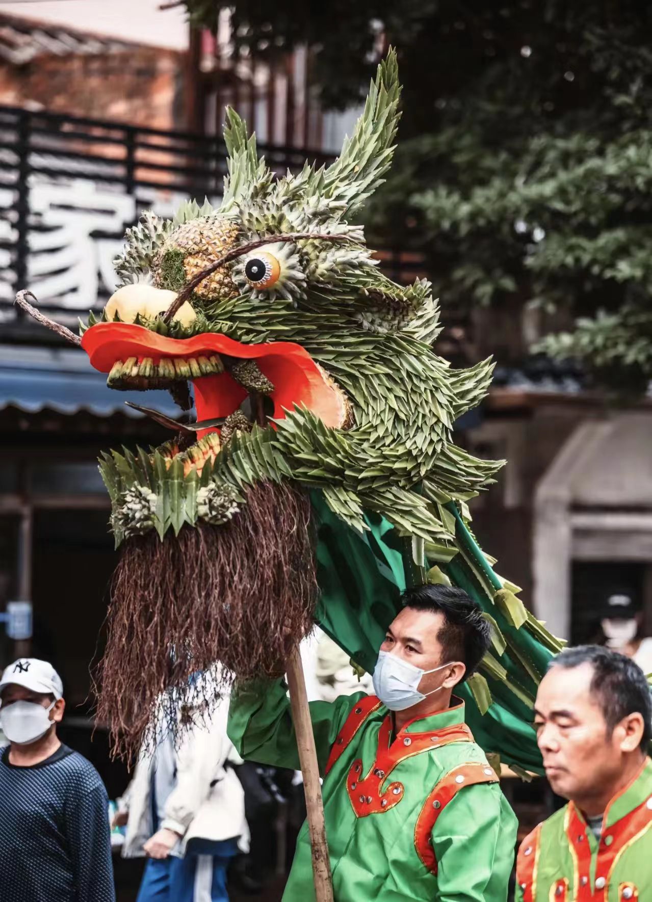 筋古龙是用鲜勒古叶片贴成龙身,鲜菠萝皮铺成龙鳞,筋古果嵌成龙牙。稻草龙用禾杆扎成龙头,用禾草连成龙身,用大橙子镶成龙眼,活灵活现。筋古龙是湛江市赤坎区文章湾村特有的传统舞龙艺术,已被广东省列入非物质文化遗产。“文章湾村筋古龙”,目前所见唯一“纯植物编制的民俗舞龙”